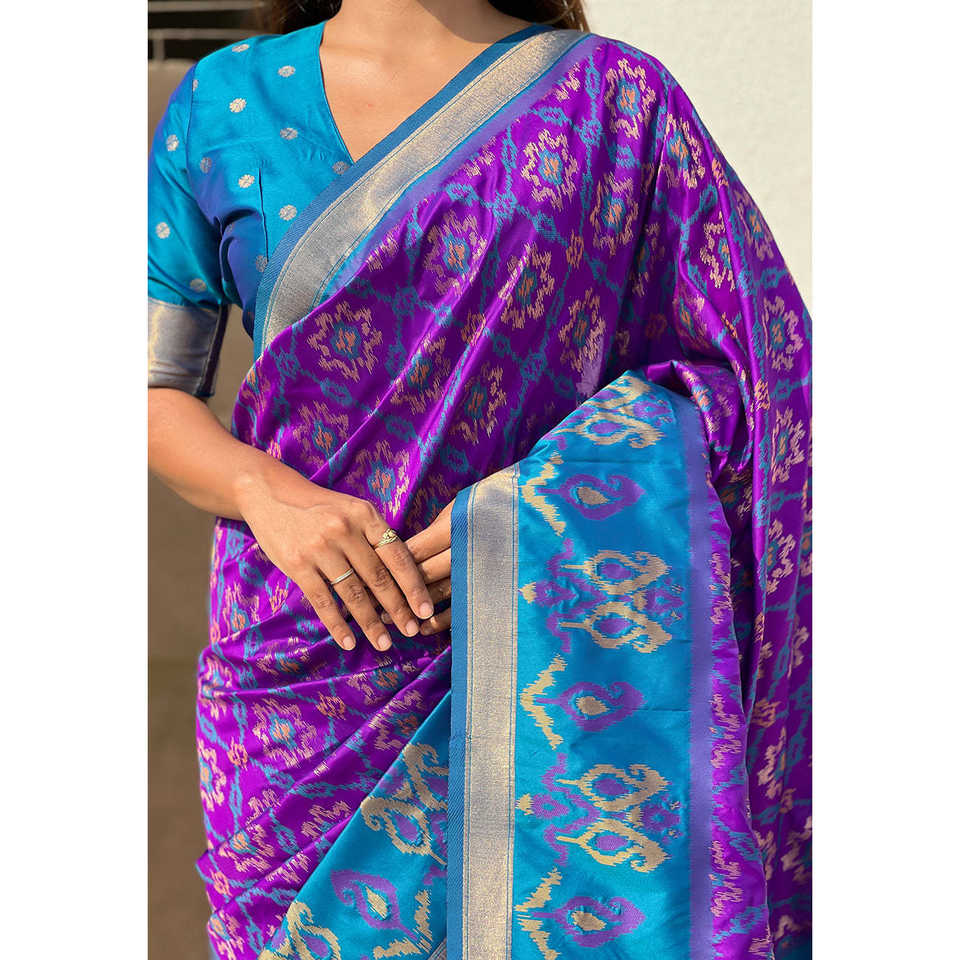 Purple Soft Silk Zari Woven Patola Saree with Contrast Weaves for Club Dress-Up