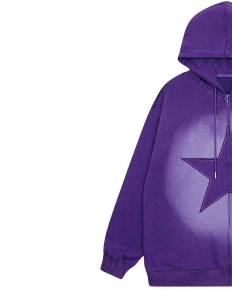Purple Star Print Zip Up Hoodie Oversized Women Hooded Sweatshirt Casual Streetwear Fleece Jacket Winter Wear