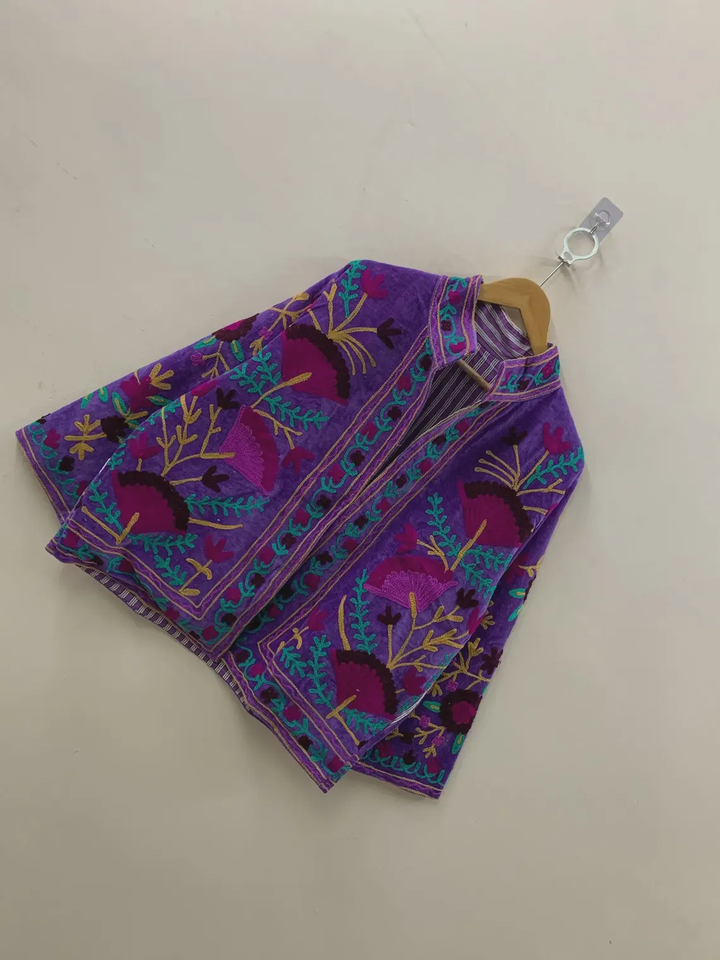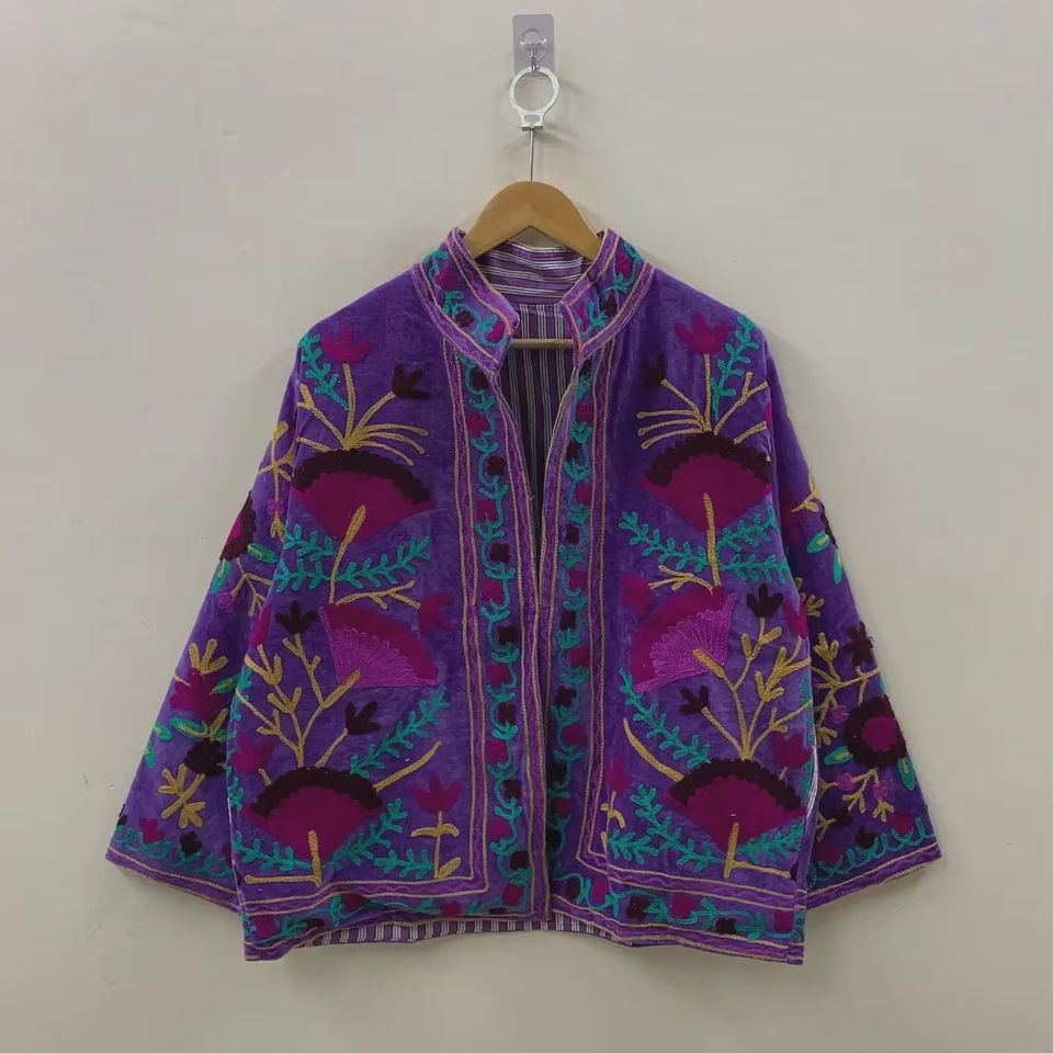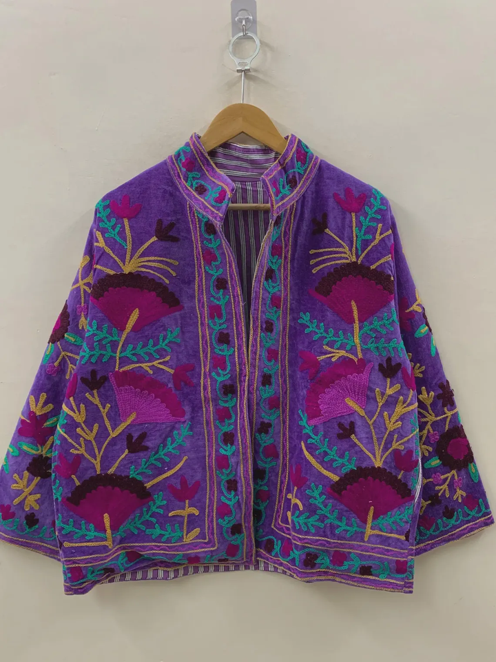 Purple Suzani Embroidery Velvet Jacket Vintage Boho Coat Unisex Winter Jacket Ethnic Chic Outerwear