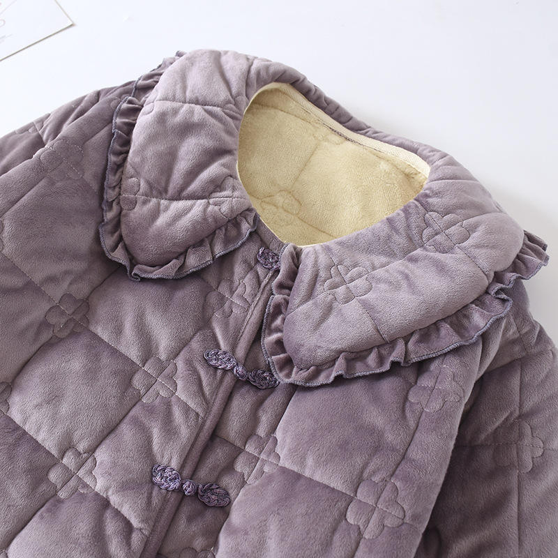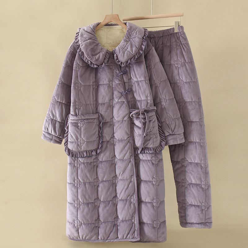 Robe de chambre matelassée à trois couches de couleur violette avec pantalon en coton, vêtements d'hiver pour femmes, vêtements de détente, ensemble pour dormir