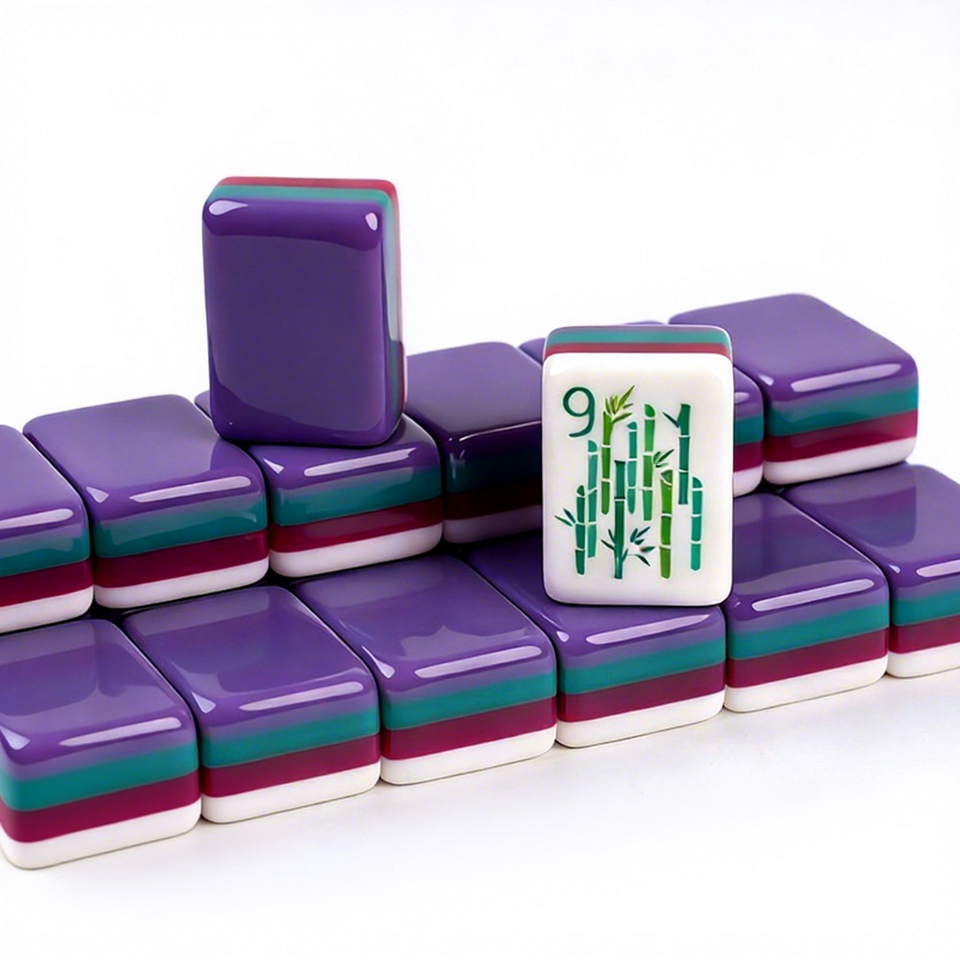 Mahjong miniature violet à quatre couches en acrylique à motif bambou pour divertissement à domicile