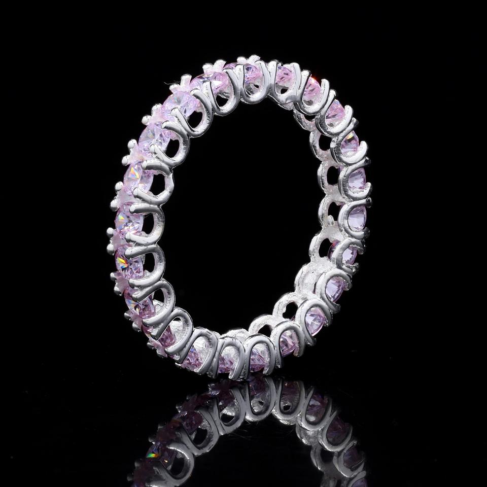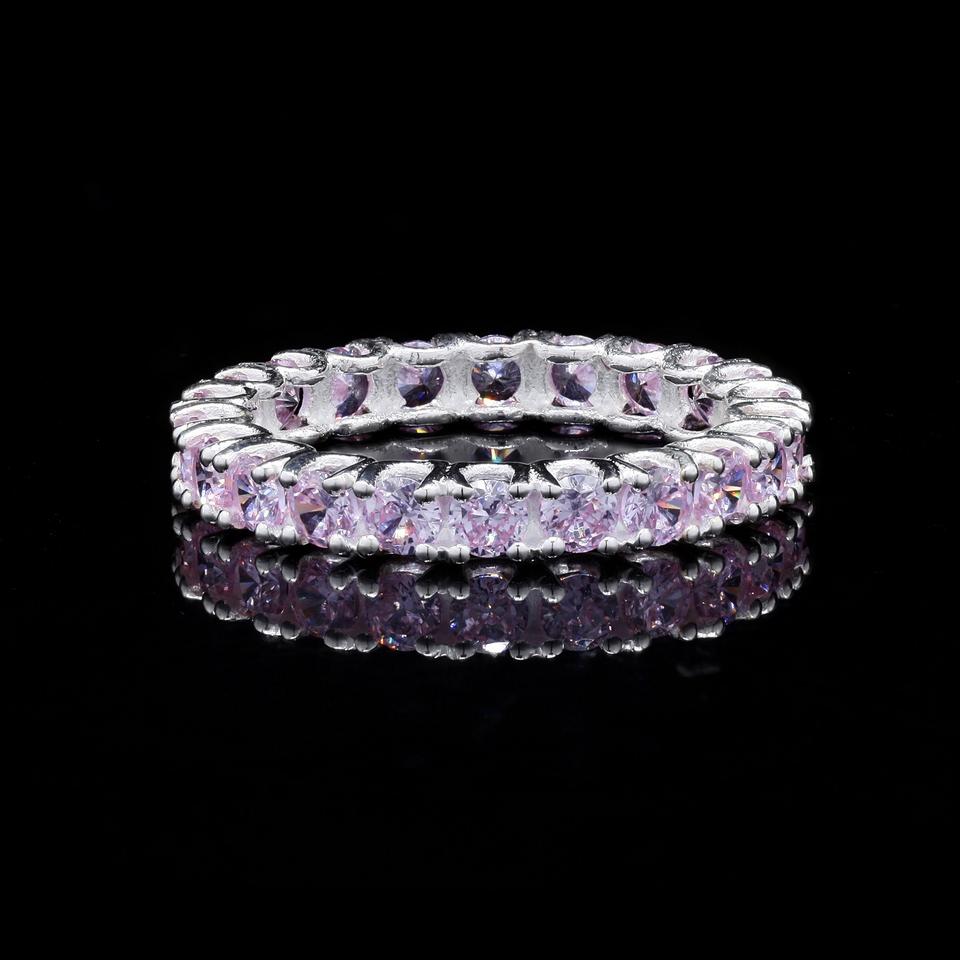 Bague Éternité Femme en Argent Sterling 925, Style Bohème, Classique, avec Améthyste Violette, Plaqué Rhodium, Sertissage à Griffes, pour Soirée