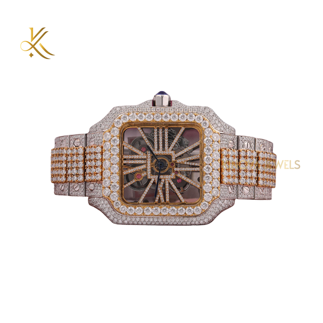 Montre-bracelet de luxe en acier inoxydable avec fermoir caché à bouton-poussoir carré de 41 mm en moissanite