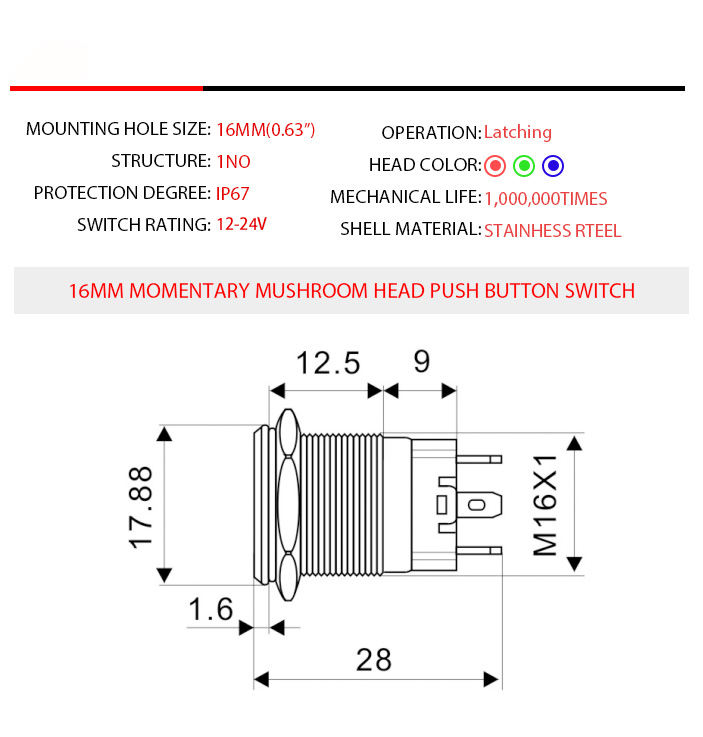 Mounting Hole Size:16mm/19mm/22mm