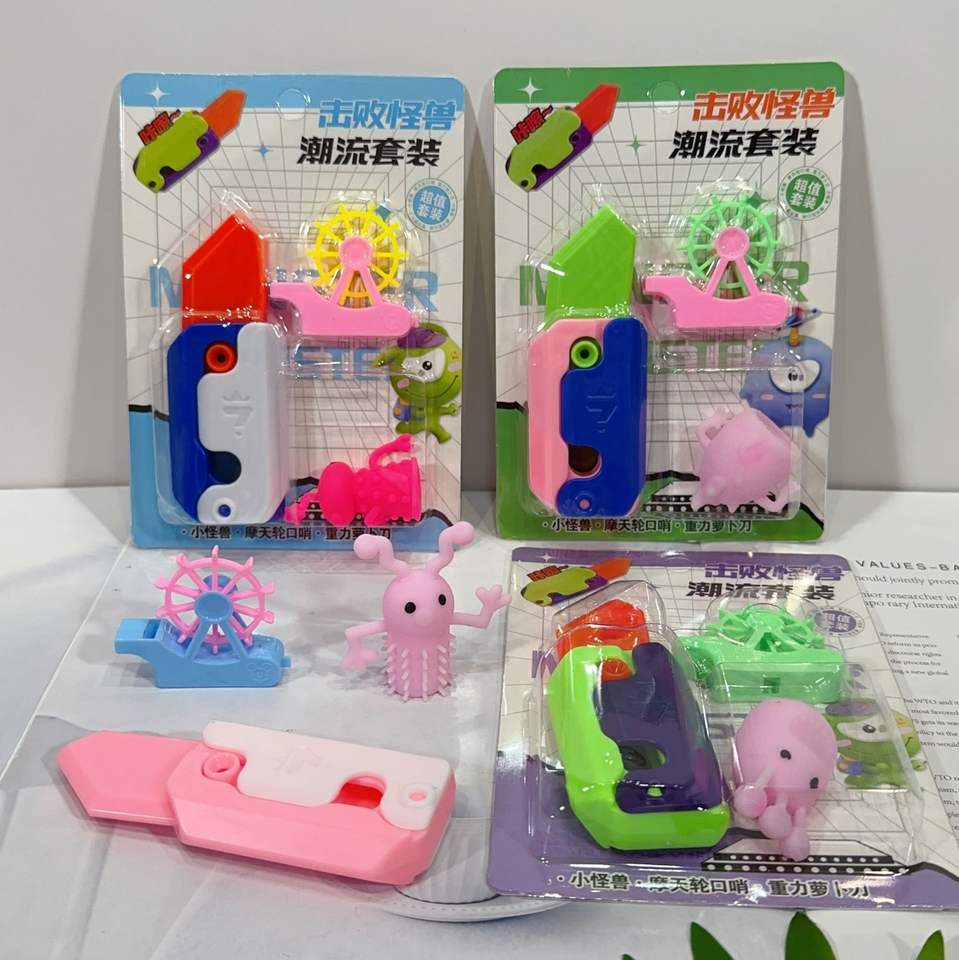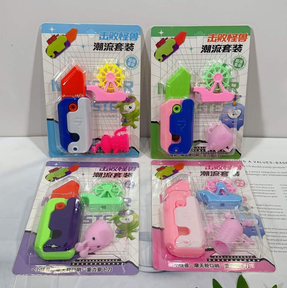 Carte poussoir petite carotte balisong couteau jouet formateur 3d imprimé carotte radis couteau avec blister léger emballage