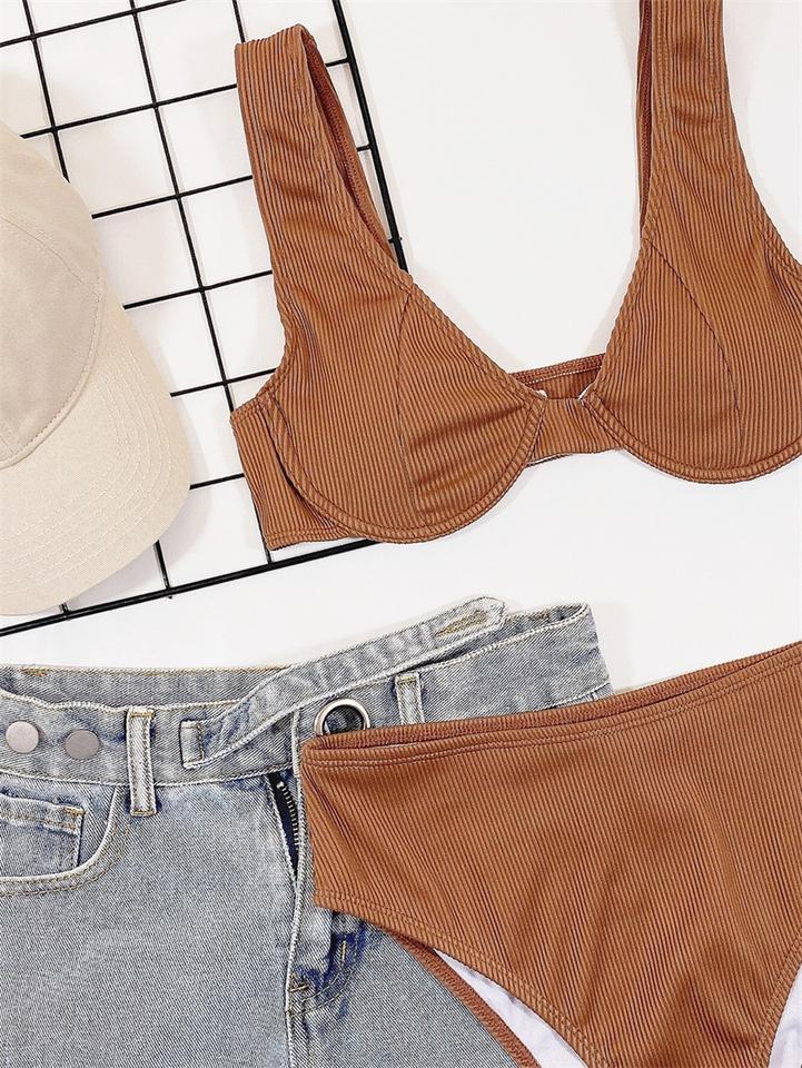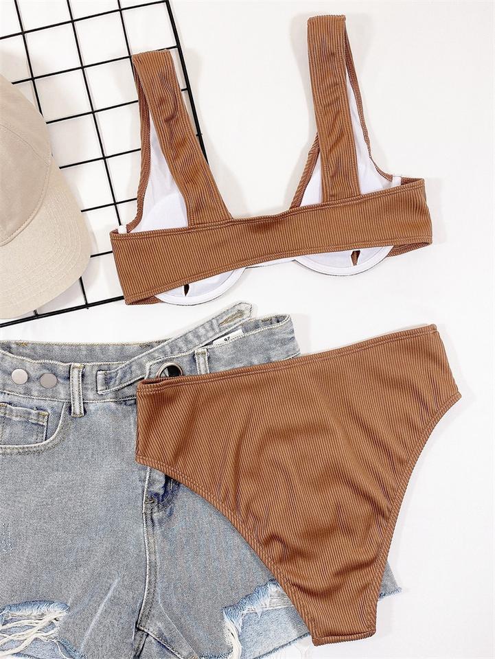 Maillot de bain Sexy pour femmes, soutien-gorge Push Up, couleur solide, taille haute, plage, ensemble deux pièces