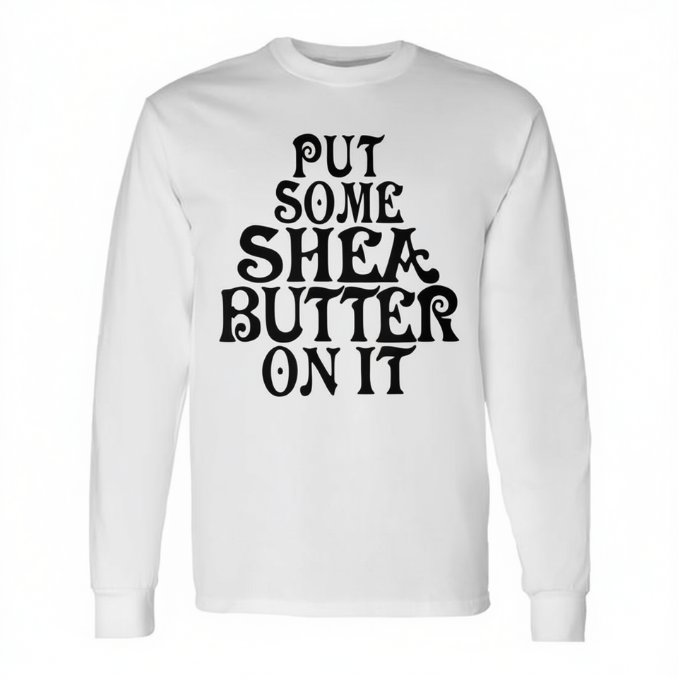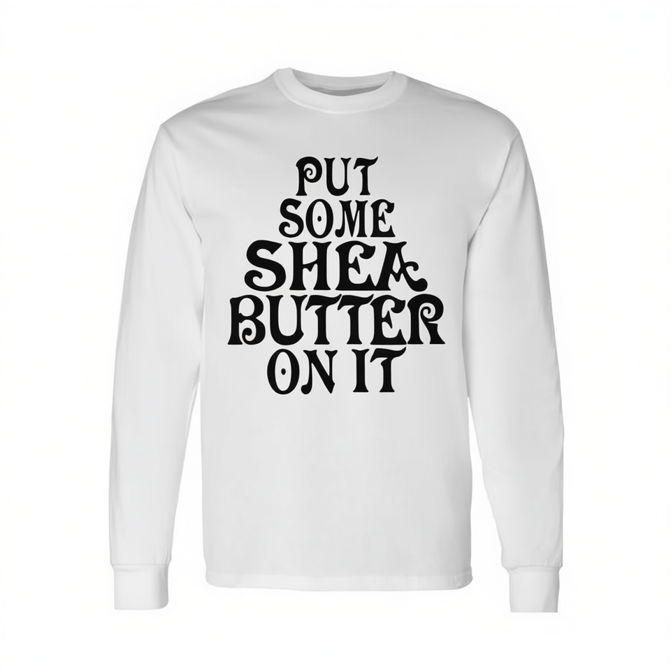 T-shirt à manches longues en coton à col rond unisexe pour adulte avec un motif « Put Some Shea Butter On It » – T-shirts promotionnels