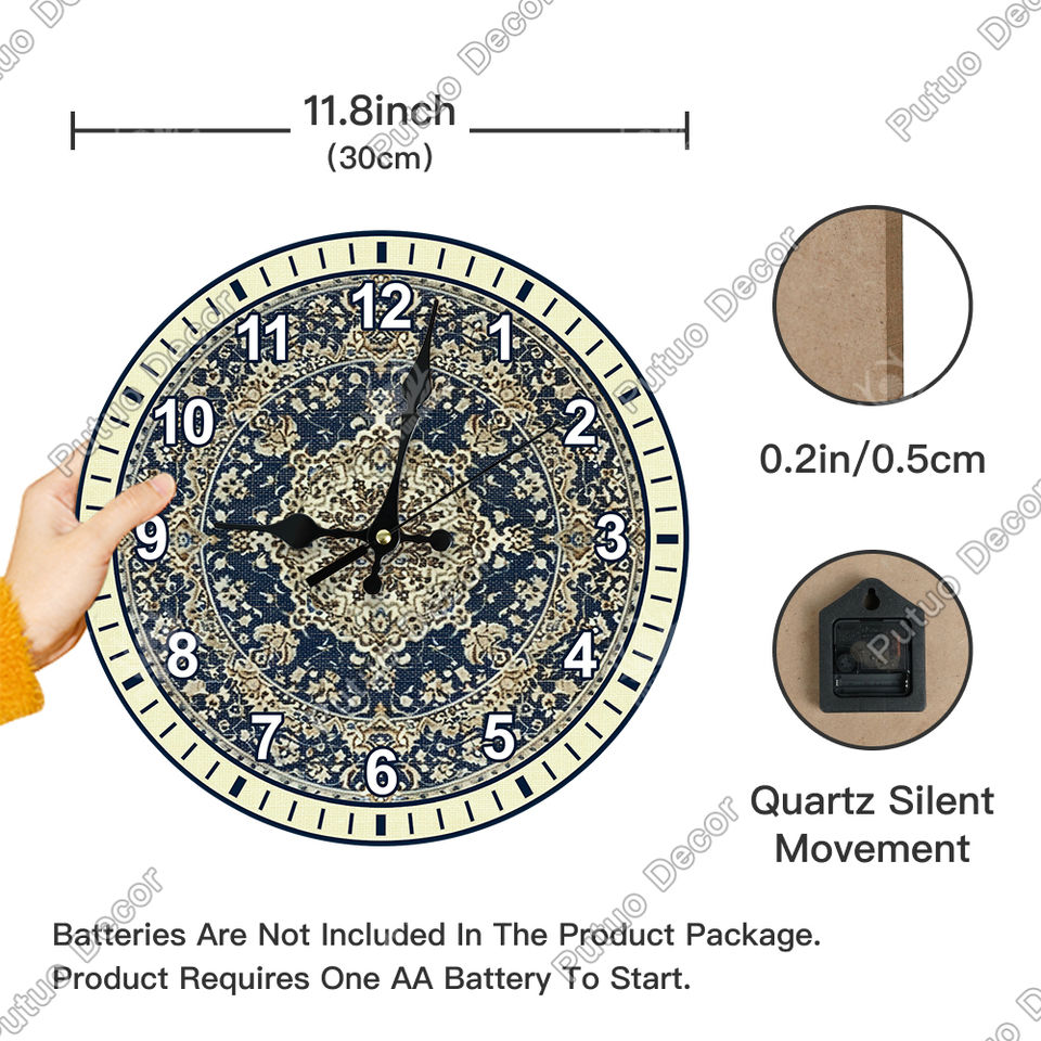Putuo Décor Bohème Motif Africain Rond Bois Horloge Murale Motif Rustique Salon Chambre Horloge Murale Décor