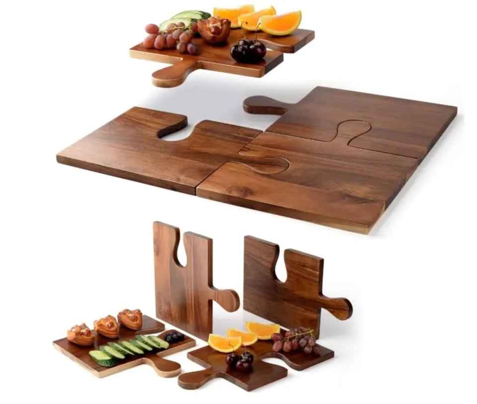 Ensemble de planches à découper en bois emboîtables, plateau de service pour fromages et charcuteries, plateau de service de cuisine en bois