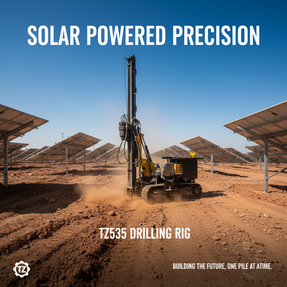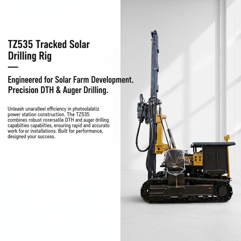 Foreuse de pieux autopropulsée sur chenilles avec tête rotative hydraulique, équipement mobile de forage pour fondations de fermes solaires