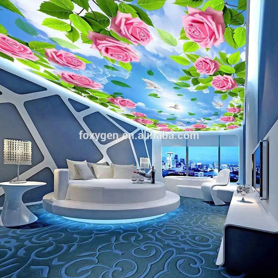Matériaux de plafond en PVC, types de plafonds tendus, prix des matériaux de plafond, papier peint 3D vert à fleurs