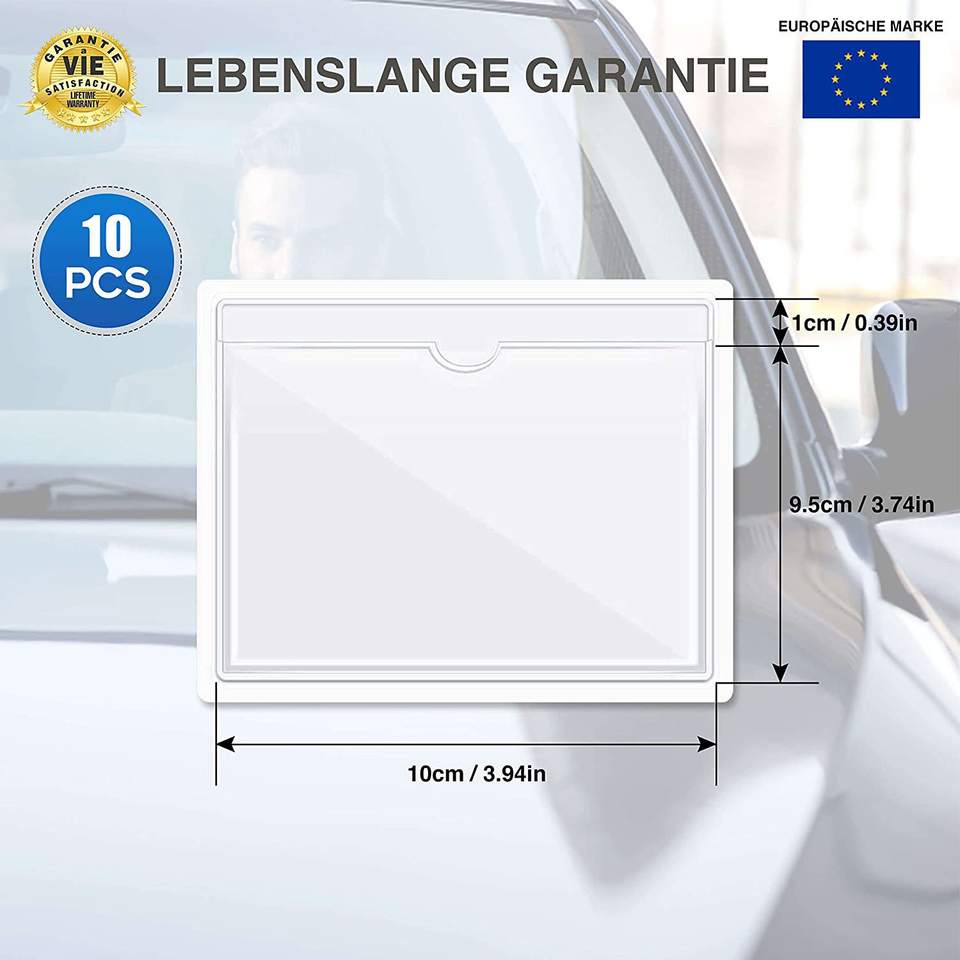 Pochette transparente autocollante en PVC pour pare-brise de voiture, porte-permis de stationnement, porte-carte d'assurance automobile
