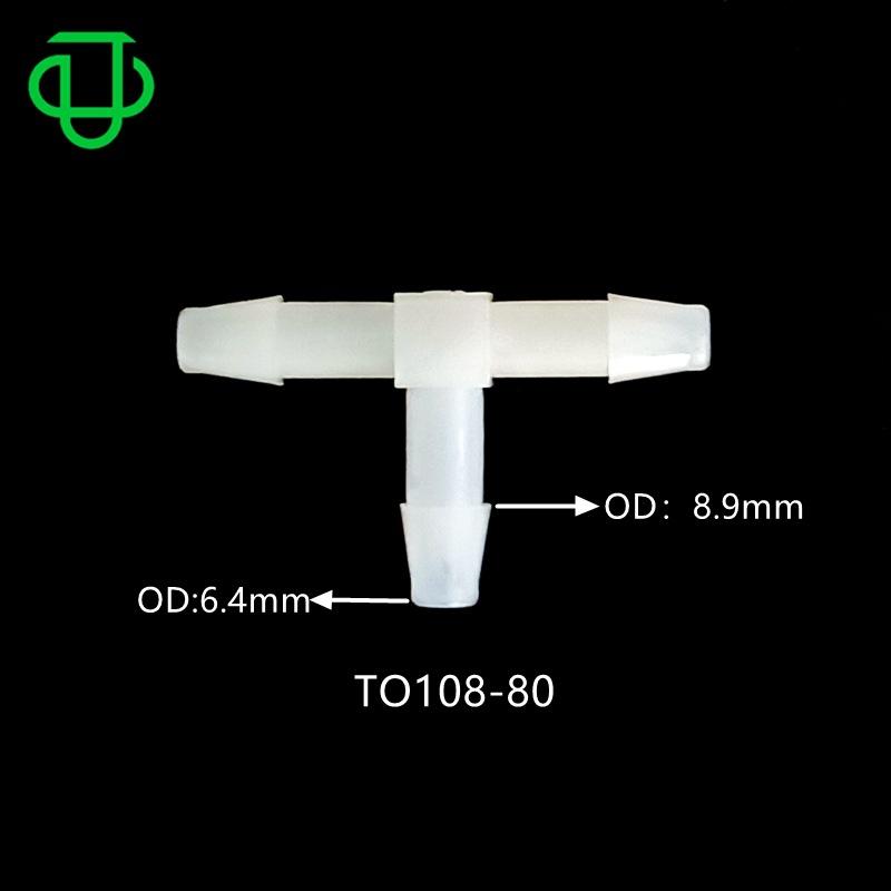Connecteur en T en plastique PVDF à diamètre égal avec crochet barbelé pour connexion de fluides, raccord de tuyau transparent 6-8 mm
