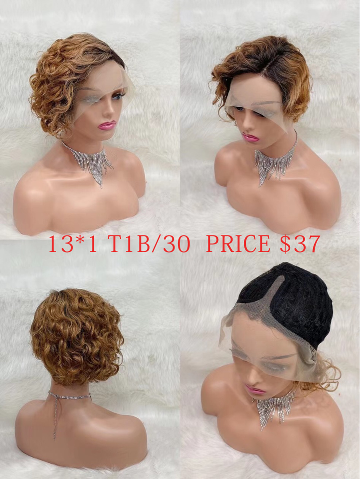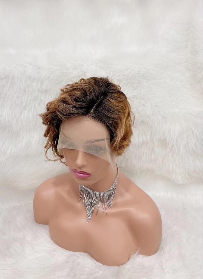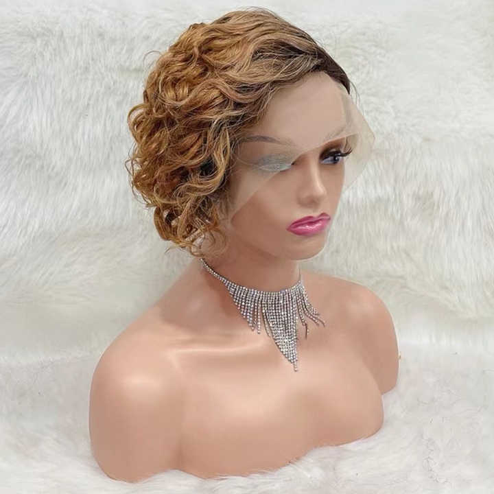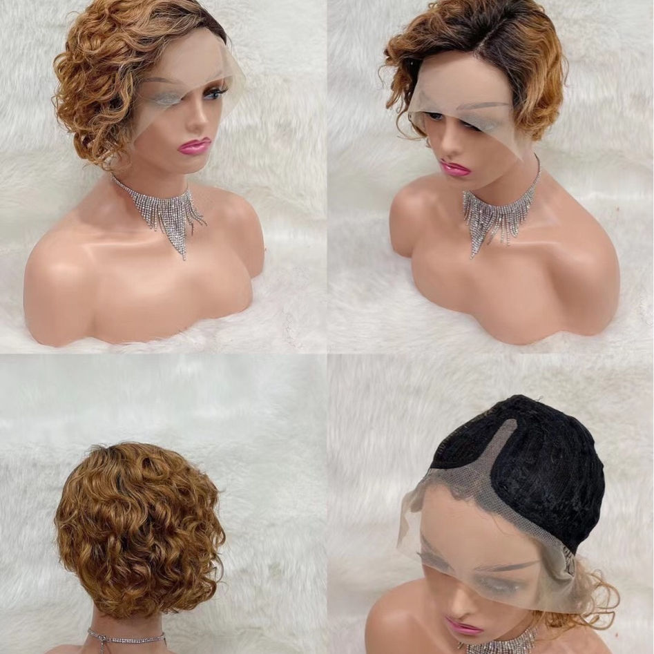 Perruque courte bob frontale en dentelle Pxie Cut Curly Lace Front Wig Ombre Honey Blonde Colored Human Hair Wigs Preplucked 13x1 pour femmes noires