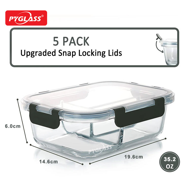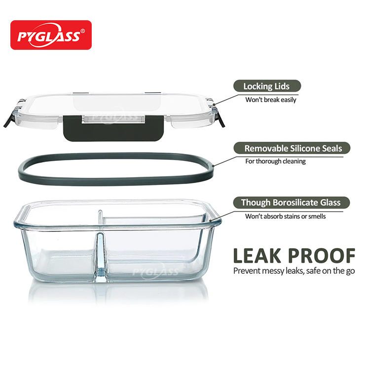 Pyglass Le récipient de stockage en verre compartimenté peut séparer clairement différents aliments Boîte à lunch en verre avec 3 compartiments