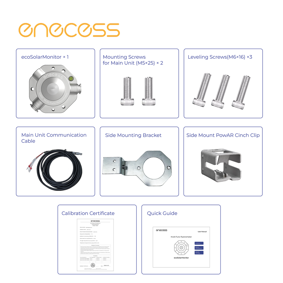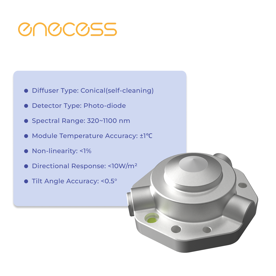 Pyranomètre | Surveillance solaire sur toiture | Intégration 3-en-1 | Irradiance | Module PV Temp | Angle d'inclinaison | Mesure bifaciale | RS485 | IP67