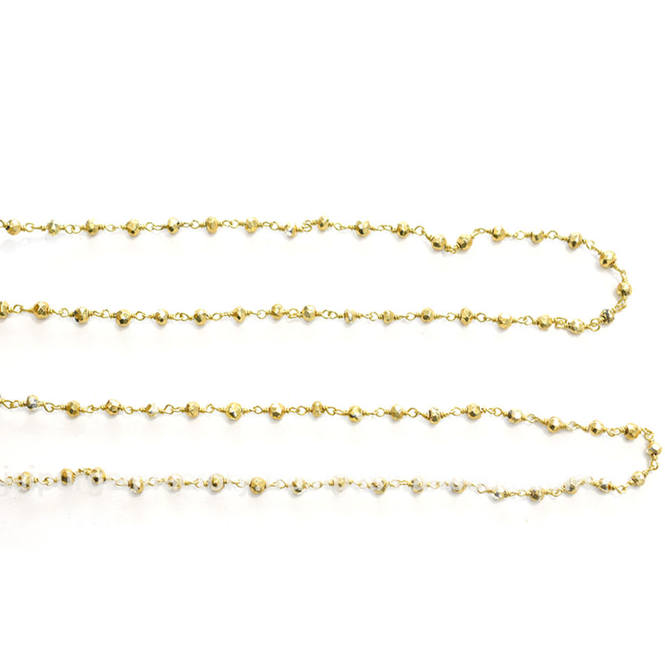 Chaîne de fabrication de bijoux en argent sterling 925 plaqué or, forme de rondelle facettée en pyrite, enroulée autour d'un fil de chapelet, fabriquée par Jaipur Gem Factory