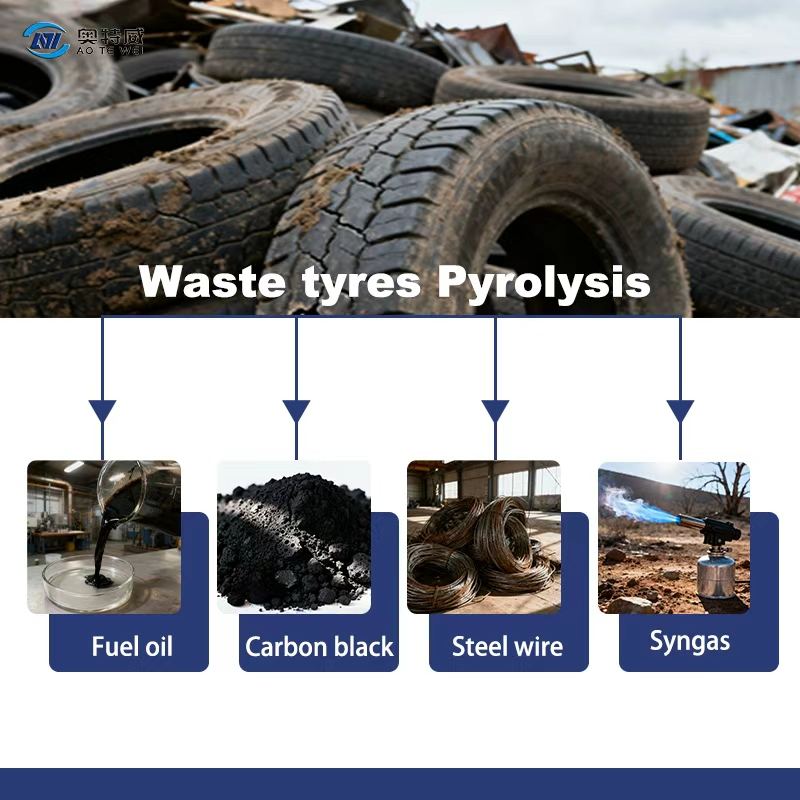 Produit final:Huile de pyrolyse, noir de carbone, gaz de synthèse (fil d'acier)