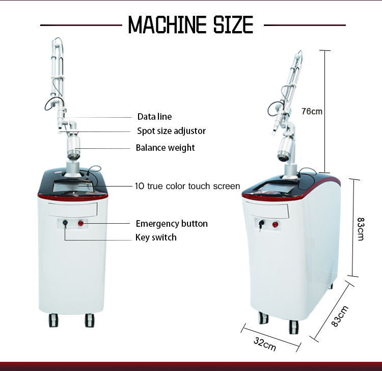 Commutateur Q machine Laser picoseconde verticale 1064nm 532nm 755nm Machine de retrait de tatouage utilisée en clinique