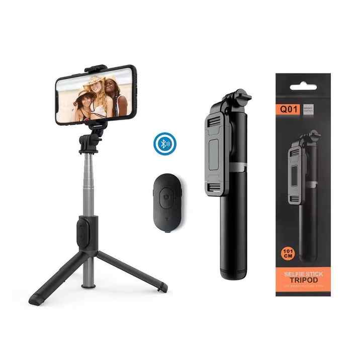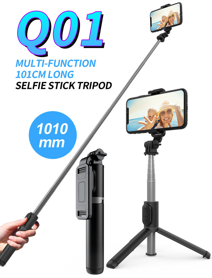 Bâton de selfie extensible Q01 avec télécommande sans fil et support de trépied Bâton de selfie léger portable