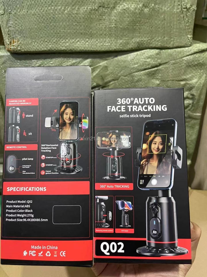 Q02 Smart Ai suivi du visage support de téléphone portable rotatif à 360 degrés Al contrôle des gestes batterie Rechargeable Selfie Stick