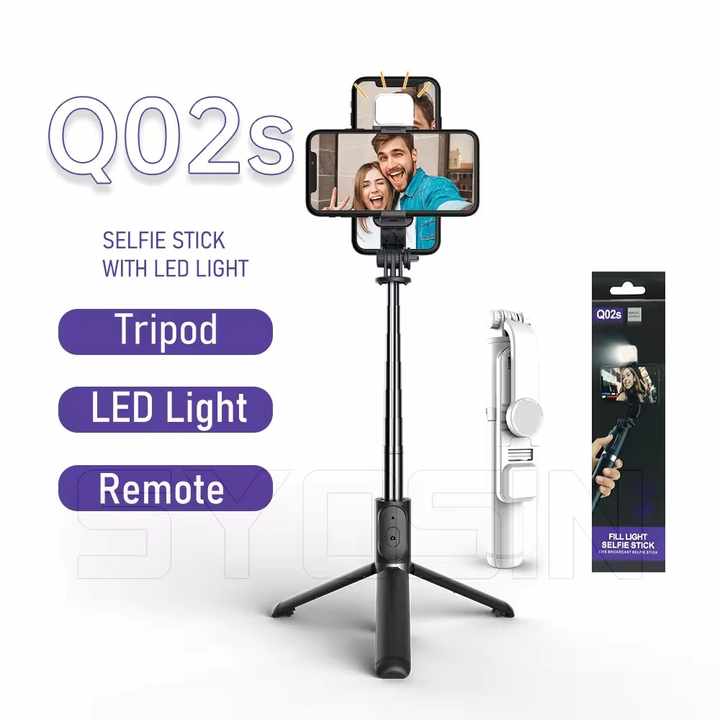 Q02S Mini bâton de Selfie pliable avec obturateur de lumière de remplissage télécommande support de téléphone en direct sans fil