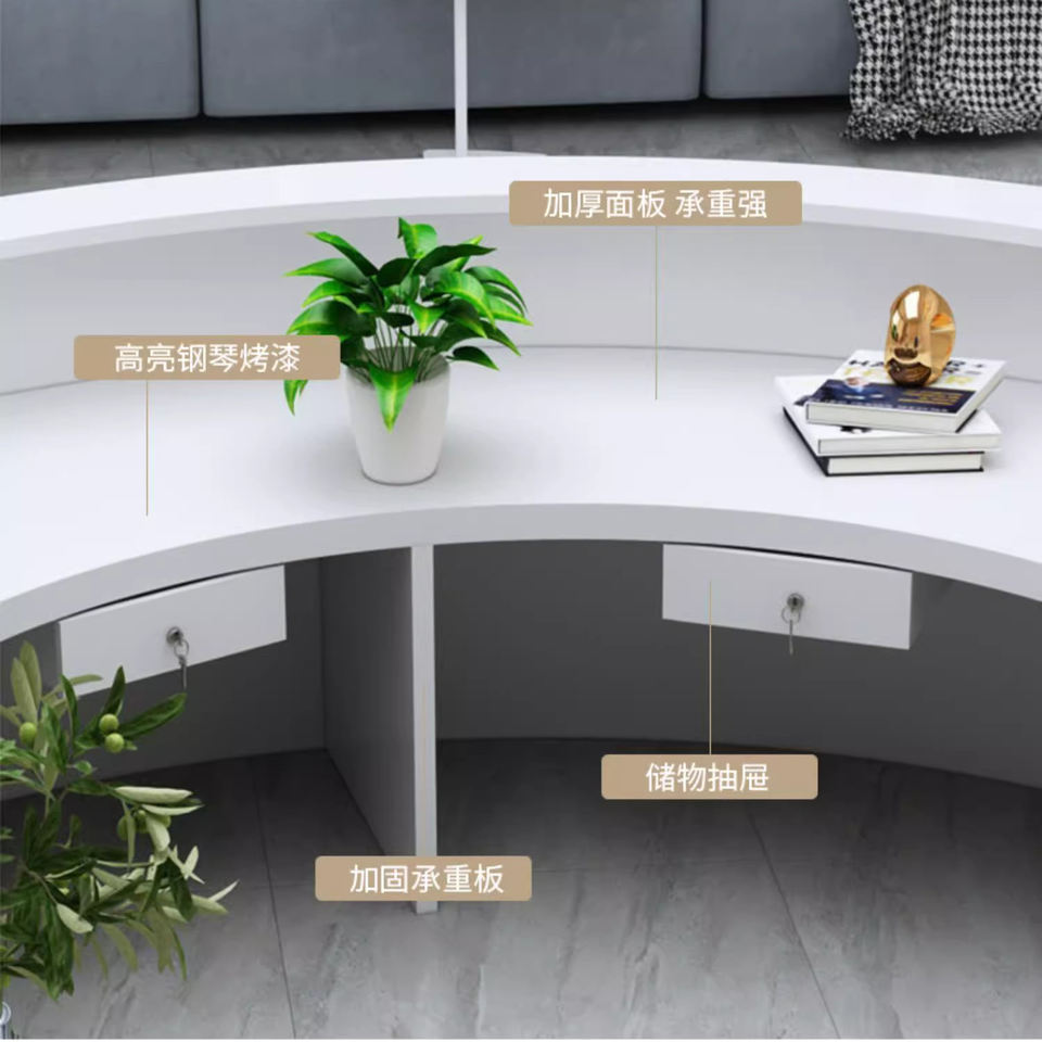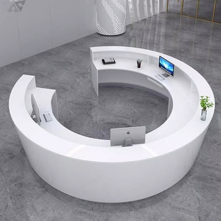 Q040 Bureau de réception ovale blanc avec auvent beige Meubles d'art personnalisés Comptoir de réception Bar de réception