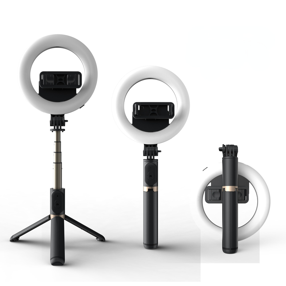 Trépied Q07 multifonctionnel avec éclairage annulaire 6 ", avec télécommande, sans fil, support pour Selfie vidéo, pour photographie, maquillage, diffusion en direct
