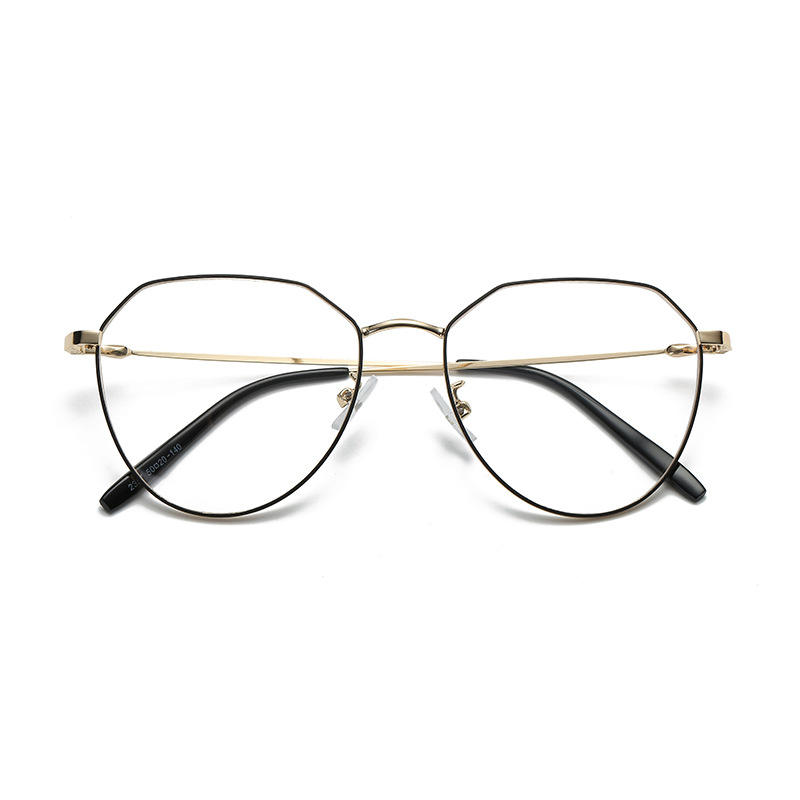 Q4-2357 Monture de lunettes en métal irrégulière, monture complète, verres plats, anti-UV, anti-lumière bleue, verres de remplacement pour femmes, prêts à l'emploi