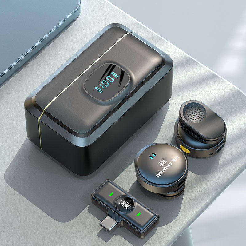 Q8 Microphone Lavalier sans fil 2.4G bouton double canal micro suppression de bruit pour l'enregistrement karaoké en direct