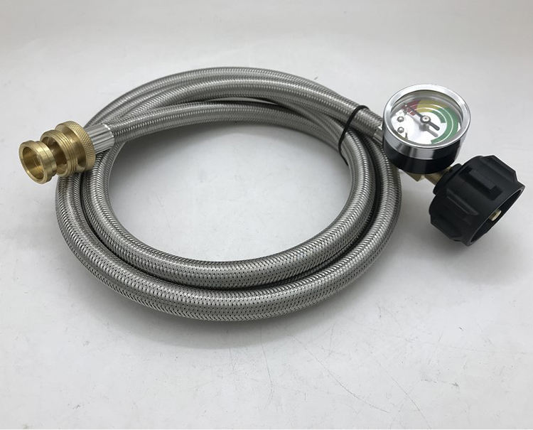 QCC Acier Inoxydable Tressé Propane Gaz Adaptateur Tuyau avec RégulateurNom du produit