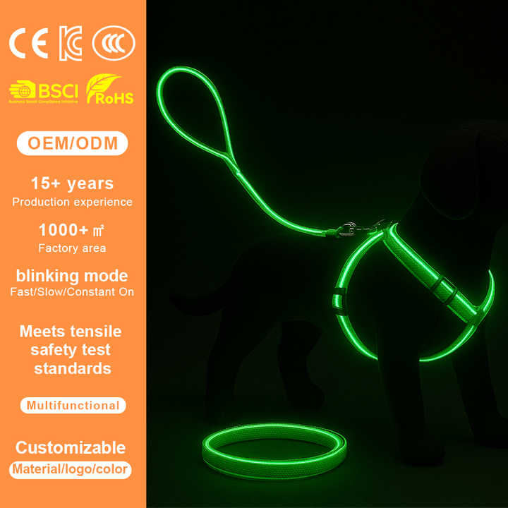 Harnais de poitrine pour chien QCool en nylon industriel avec coque résistante à l'eau, mode de recherche LED pour les projets d'exportation, lumière luminescente pour animaux de compagnie