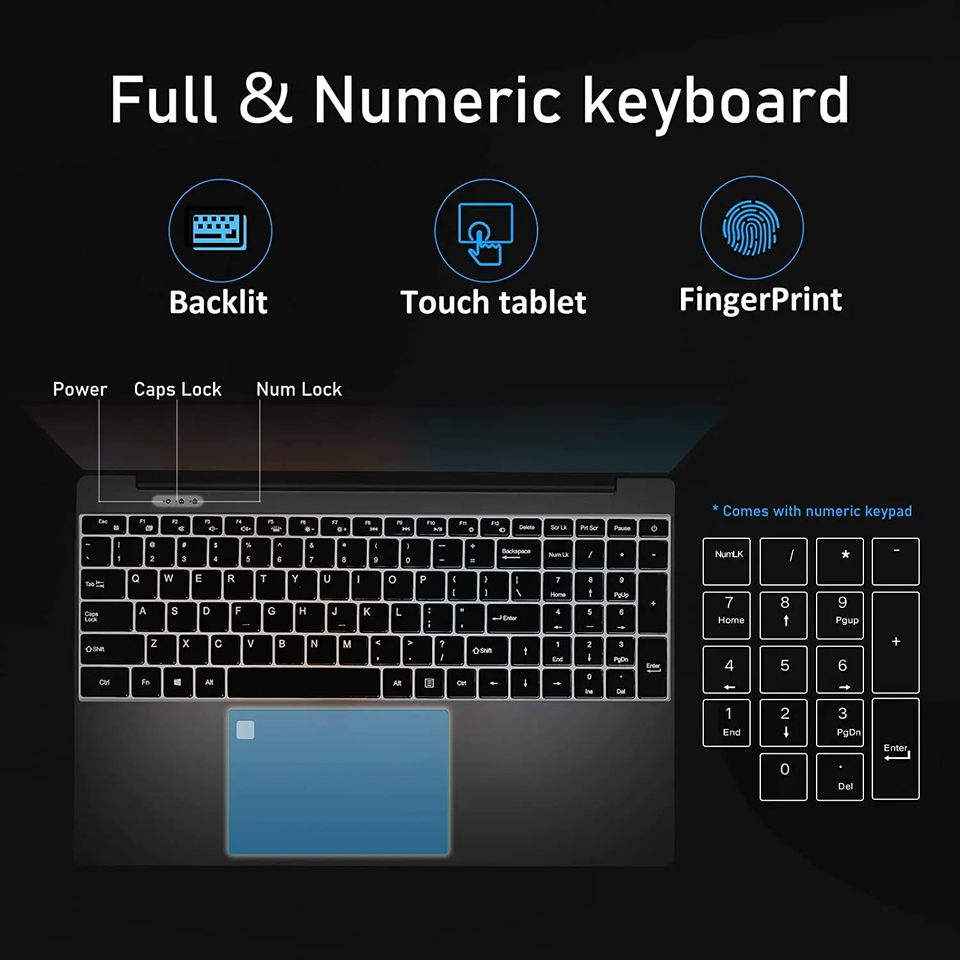 Ordinateur Portable QERE S15 15,6 Pouces Intel N5095 16Go RAM 512Go 1To SSD pour Bureau Professionnel Windows Gaming PC Portable Gamer