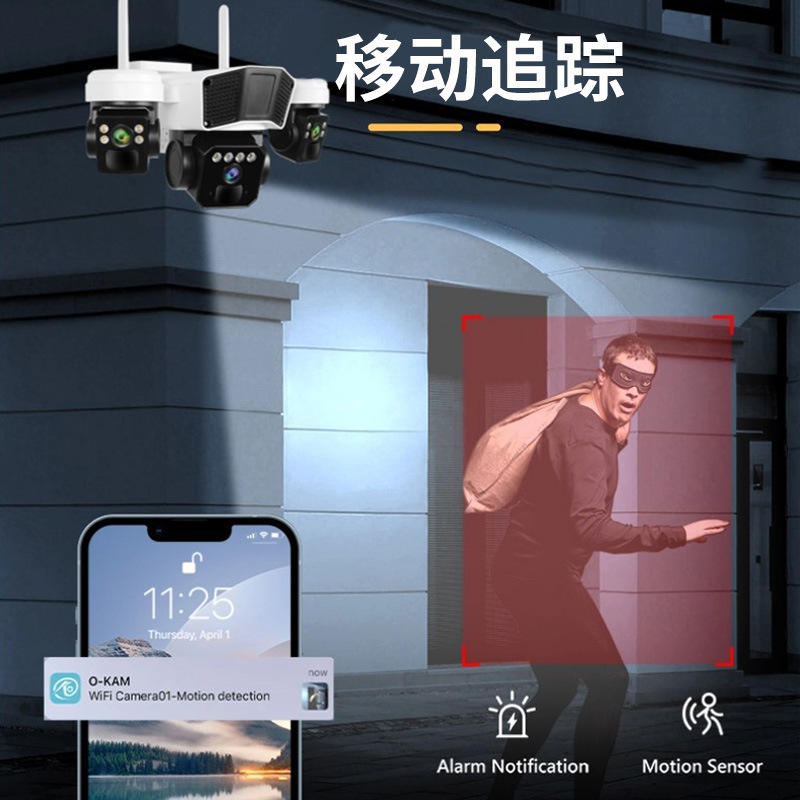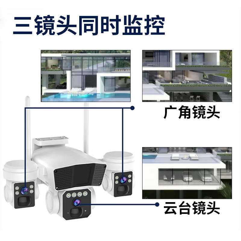 Caméra PTZ solaire QG53 6MP à triple objectif, extérieure, couleur intégrale, double éclairage, stockage cloud, prise en charge de l'intercom