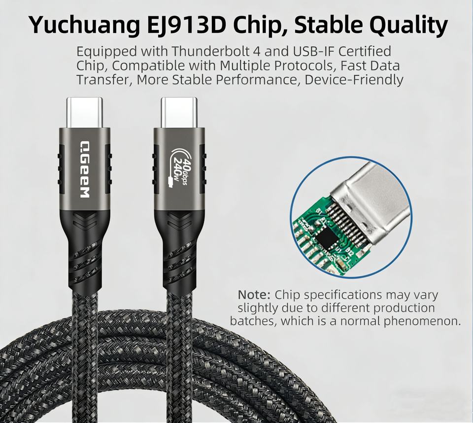 Câble USB-C QGeeM 240W 5A 40/20/10Gbps USB4.0 Type-C, câble de charge rapide, câble vidéo HD 8K 60HZ pour MacBook Pro/Air iPad Pro