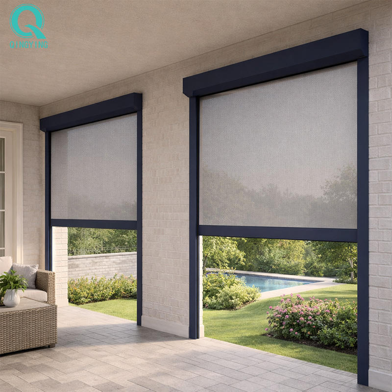 Stores motorisés anti-vent QINGYING pour patios, gazebos et portes de jardin