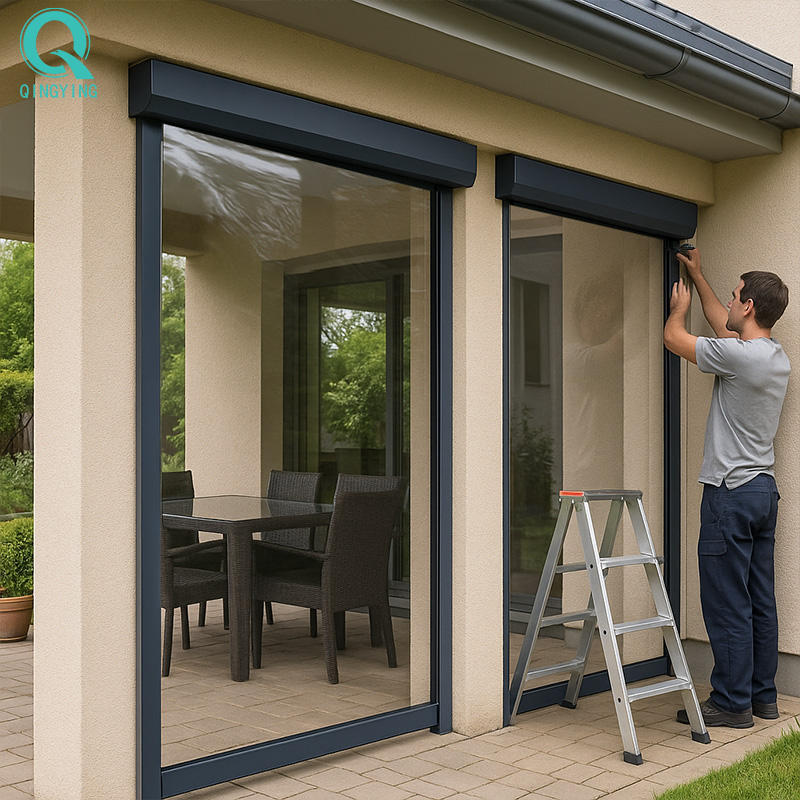 Stores enrouleurs motorisés QINGYING en PVC imperméable transparent avec fermeture éclair