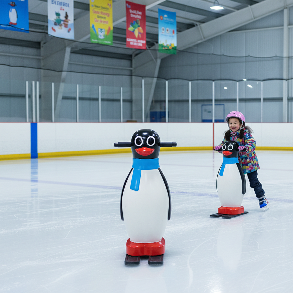 Équipement de sécurité pour patinoire d'hiver QIQU, en PEHD moulé par soufflage, aide à l'entraînement universelle pour débutants, pousseur de patins en forme de pingouin, certifié CE
