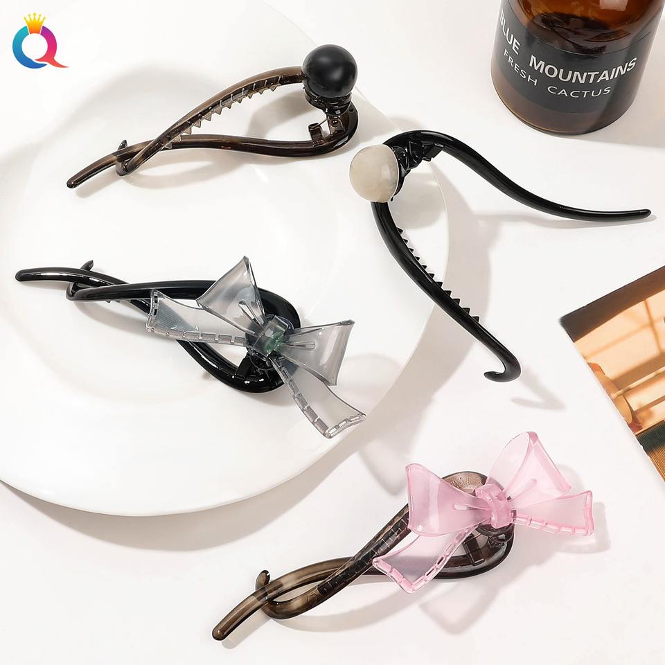 QIYUE Women's Girls' Sweet Advanced Sense Ponytail Hair Clip Small Pearl Bow Jelly Frog Buckle Plastic Hairpin PC Material