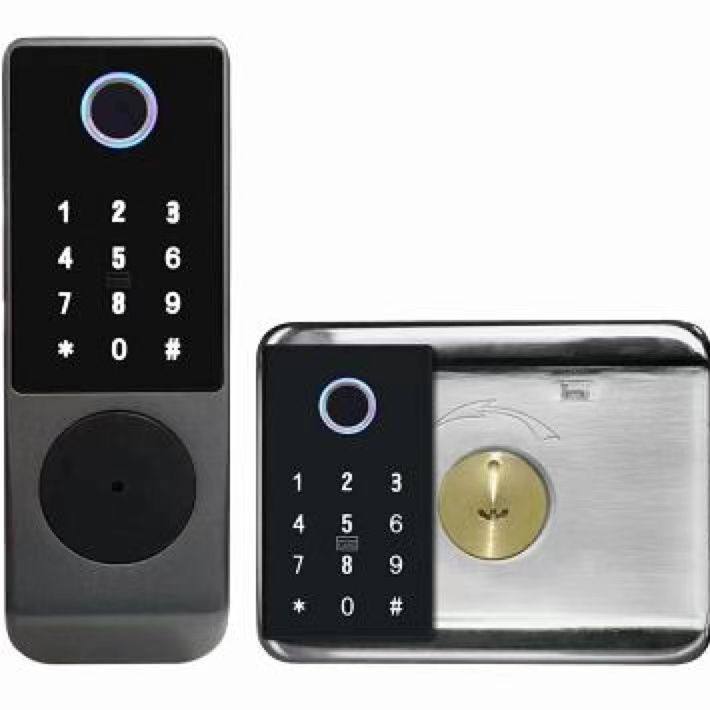 Serrure de porte intelligente QLEUNG QL-S812-4 en alliage d'aluminium, étanche, avec empreinte digitale, mot de passe, application mobile, pour usage extérieur