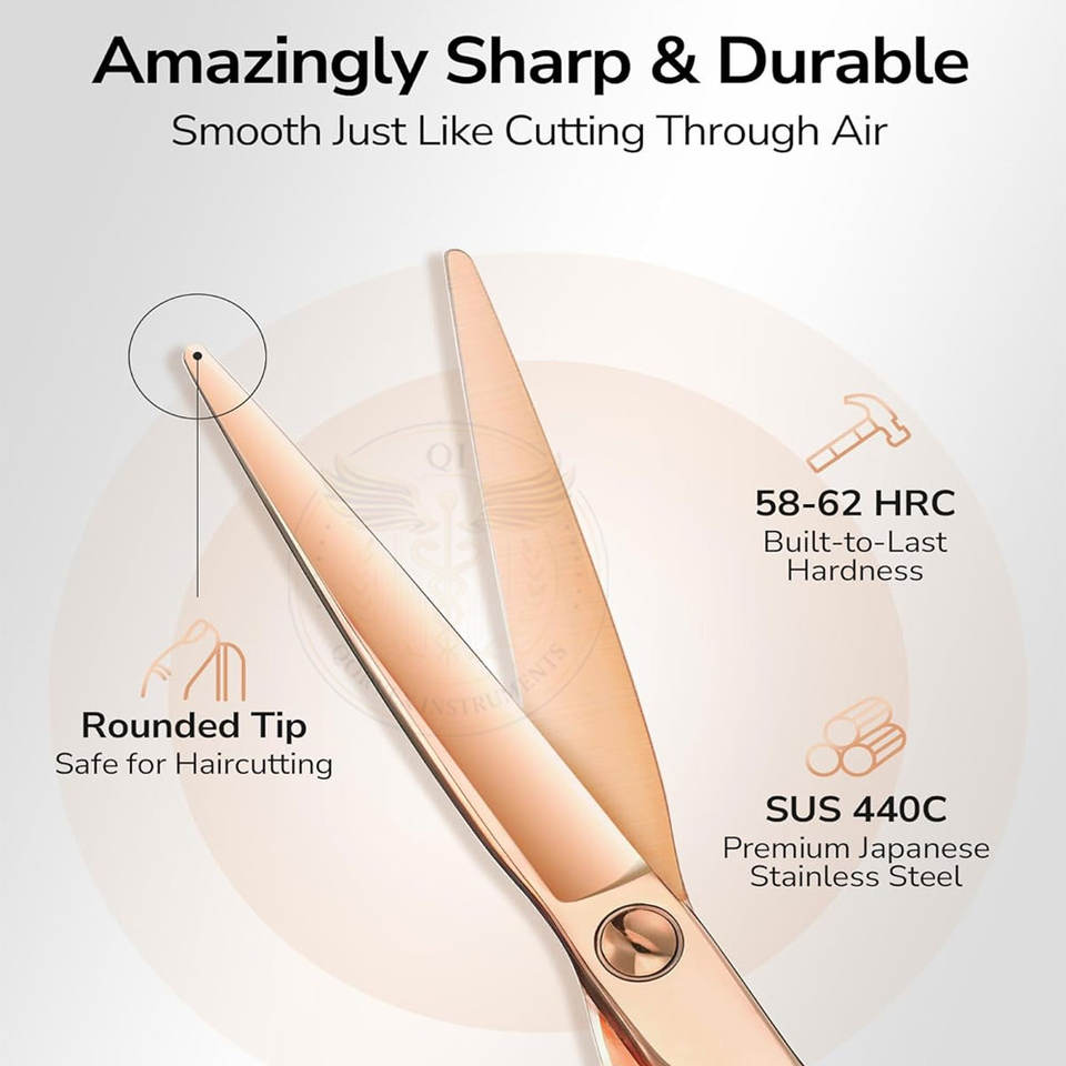 Ciseaux de coiffure QORVEX INSTRUMENTS Modèle QI-BDS-05 en acier inoxydable de qualité supérieure, légers, pour droitiers, à pointe arrondie et tranchante