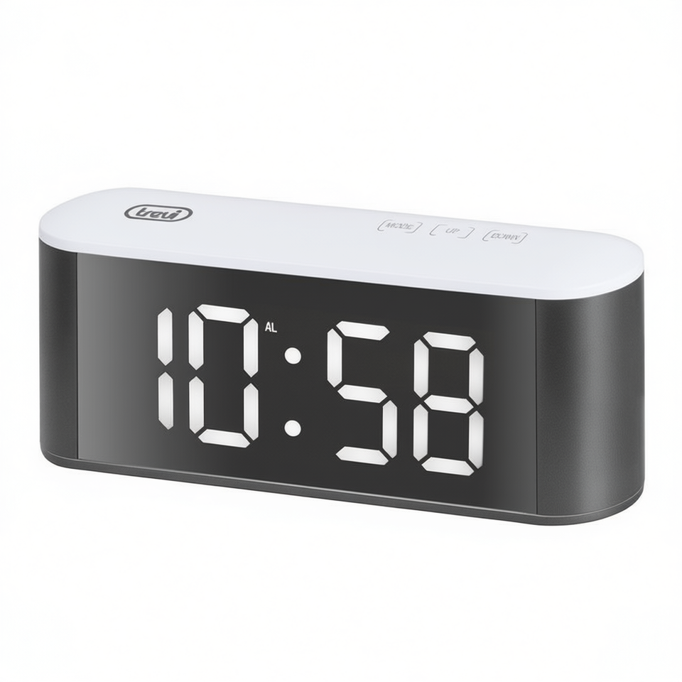 Réveil de table intelligent QS0088301 blanc et noir compatible avec Trevi EC883BL, fonction snooze