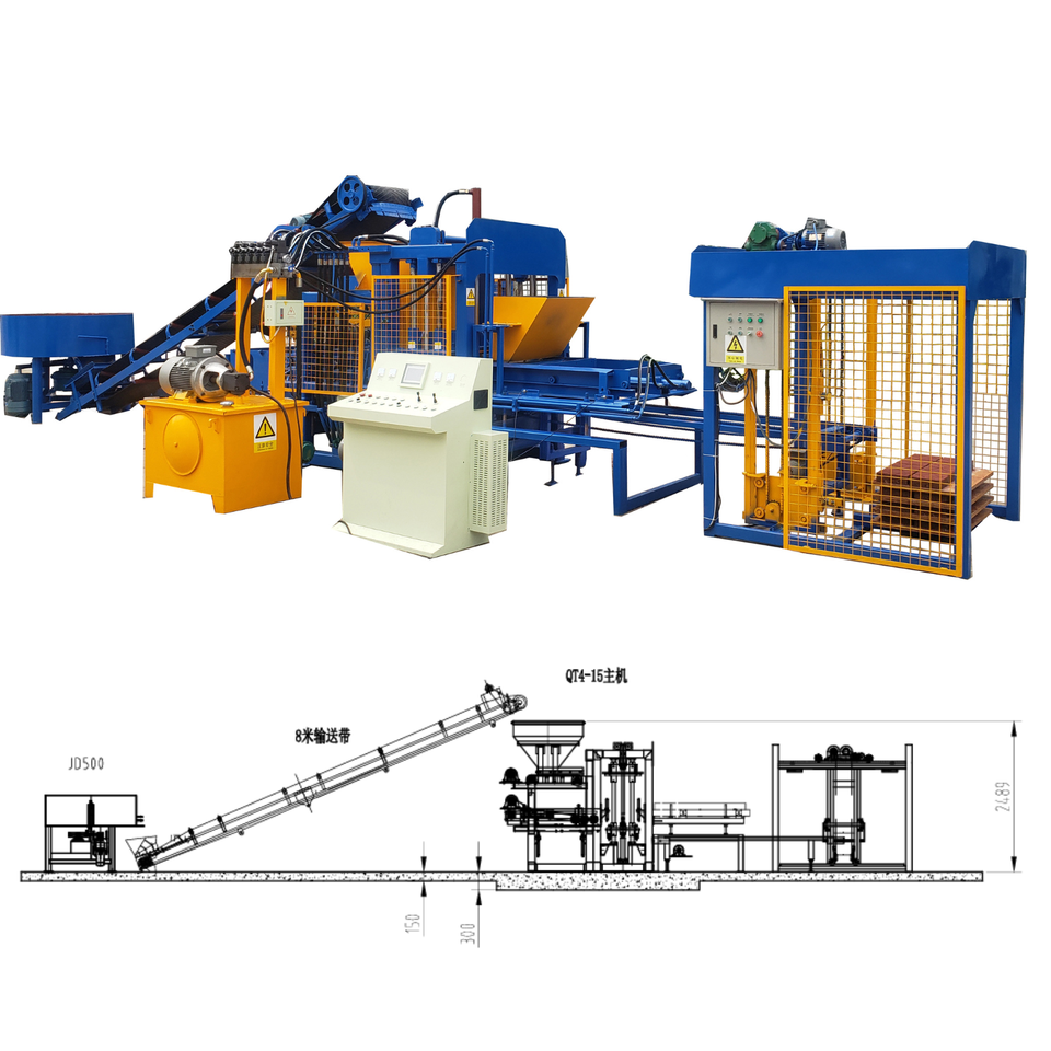 Machine Automatique de Fabrication de Blocs de Béton QT4-15, Machine à Blocs de Ciment, Machine à Pavés