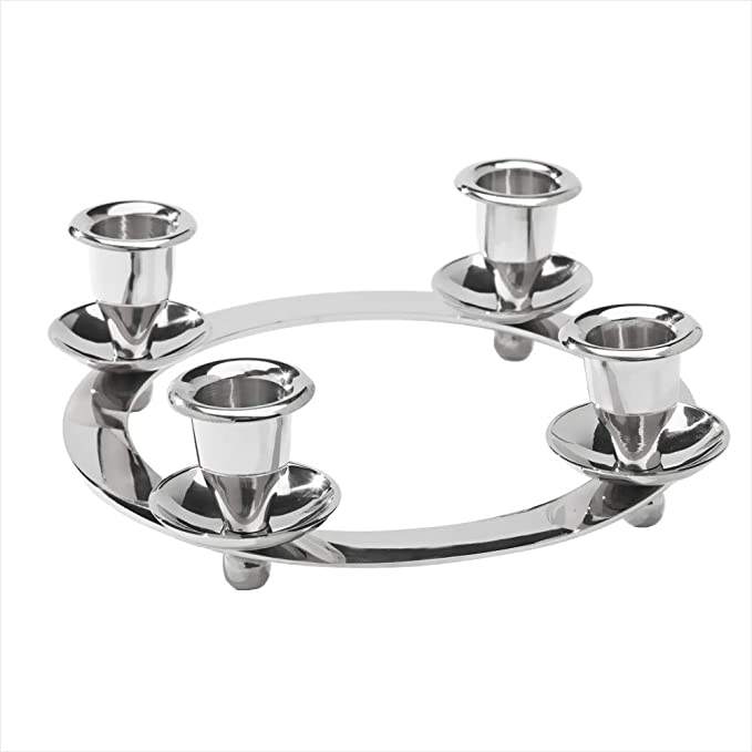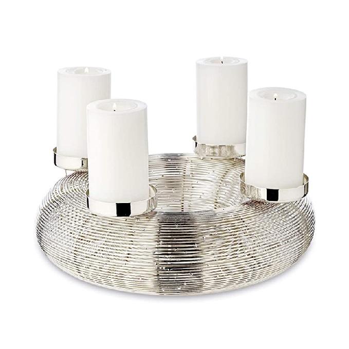 COLLECTION DE QUALITÉ Support de bougie en métal de forme arrondie finition argentée, design ultime, décoration de table pour mariage