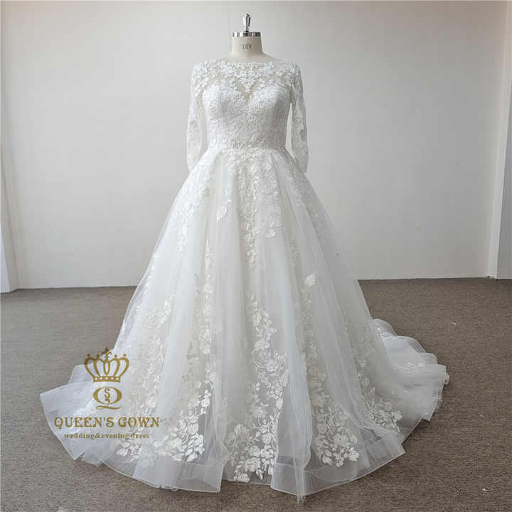 Robe de mariée musulmane QUEENS GOWN, nouvelle robe de mariée en dentelle à manches longues, col bateau, taille plus, coupe A