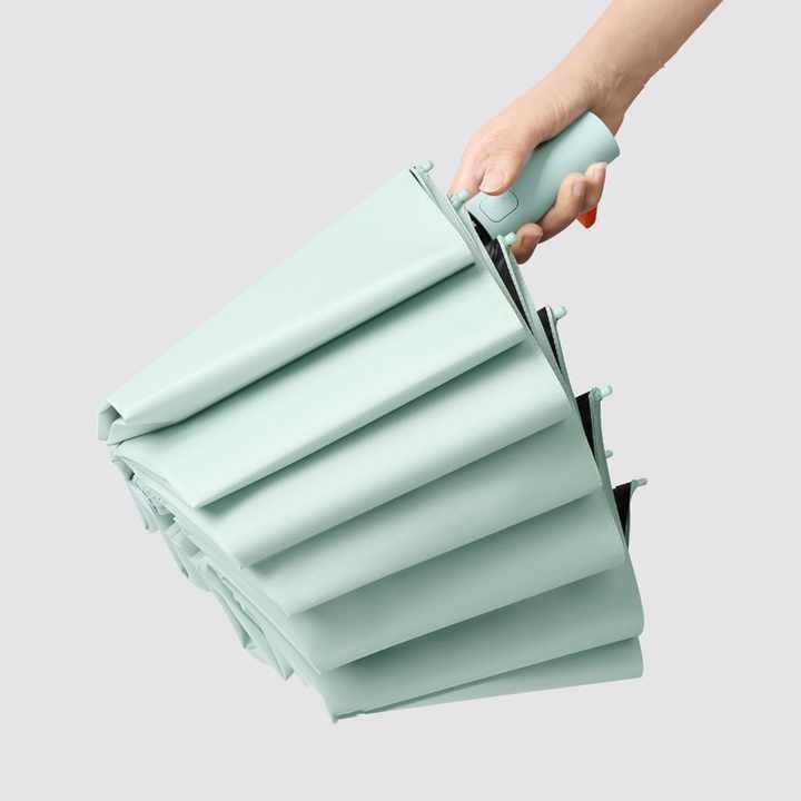Parapluie automatique pliable QX 3 personnalisable avec protection UV, 12 baleines, armature en acier, poignée en plastique - Cadeaux d'affaires en gros