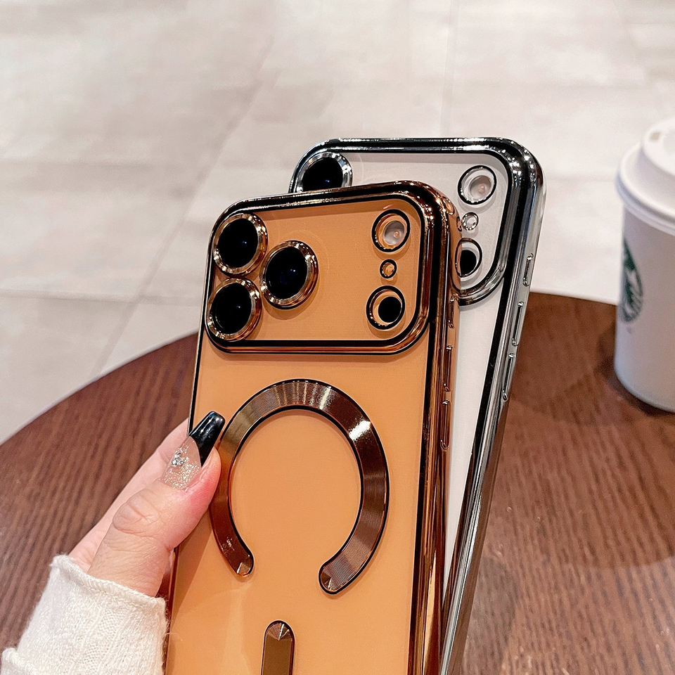 Coque de téléphone antichoc magnétique TPU + PC de luxe QY pour 17/16/15 avec protection d'objectif de caméra
