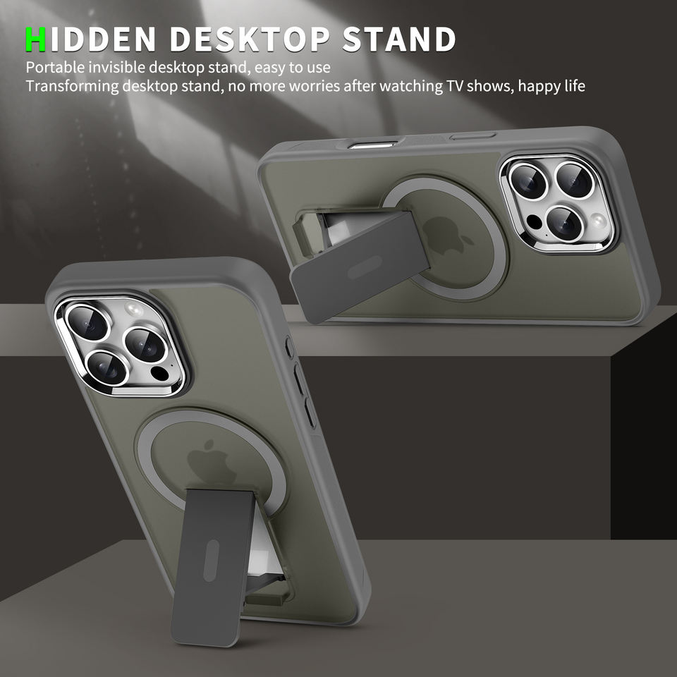 Coque de téléphone magnétique transparente QY Offre Spéciale avec support caché pliable pour iphone 16 15 14 13 Pro Max TPU PC housse antidérapante
