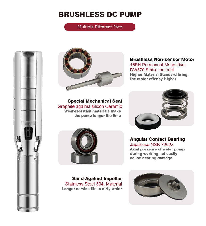 Pompe solaire QY pour puits profond 3750W, hauteur de refoulement 31m, débit 49m³/h | Boîtier en acier inoxydable anti-rouille | Système d'approvisionnement en eau pour les communautés rurales | DC 48V Haute Tension