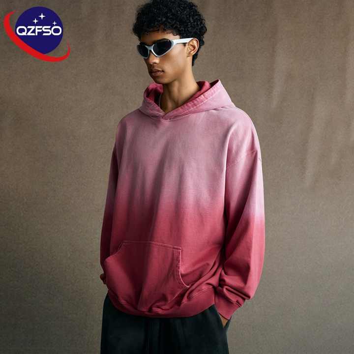 QZFSO personnalisé 100% coton éponge française 450gsm sweats à capuche lavage à l'acide en détresse Vintage strass Boxy Fit sweats à capuche pour hommes